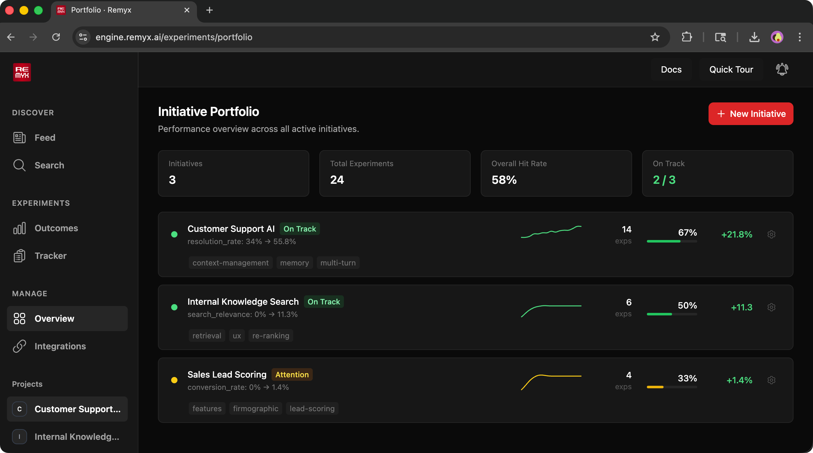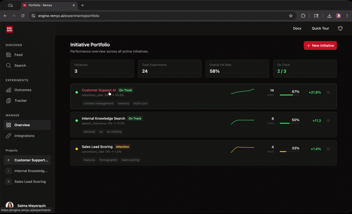 Remyx helps engineers test more ideas and helps leads know which ones drive improvements.